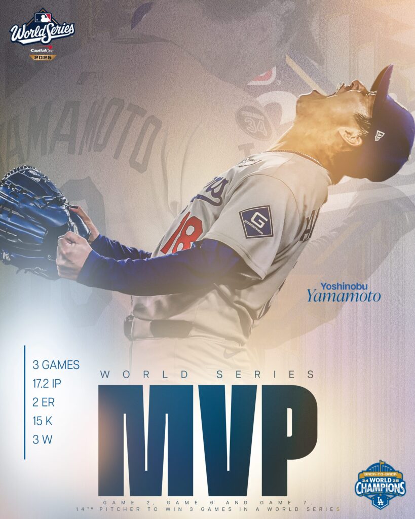 El premio al Jugador Más Valioso (MVP) de la Serie Mundial fue otorgado al as japonés de Los Ángeles, Yoshinobu Yamamoto, por una actuación de pitcheo que ya se considera legendaria.