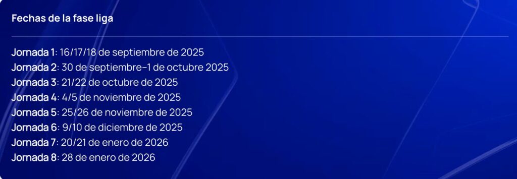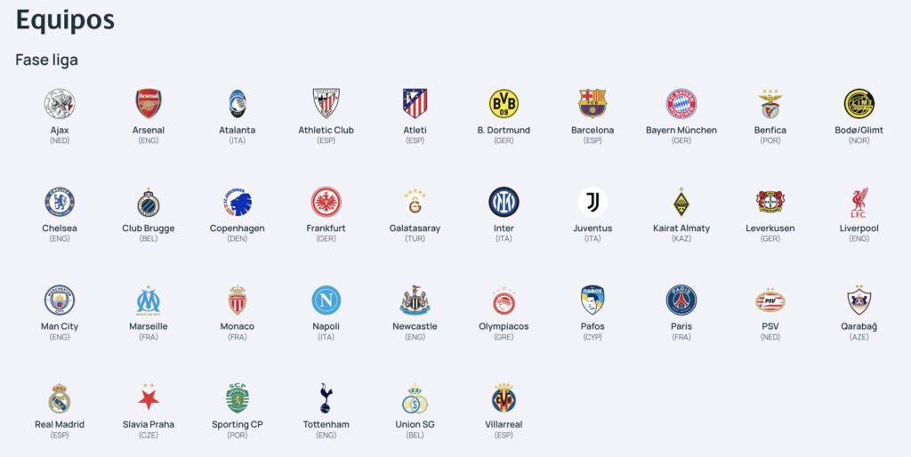 Cada uno de los 36 equipos que participan en el torneo de esta temporada ya conoce a sus ocho rivales de la fase liga. Calendario de partidos, resultados, crónicas.