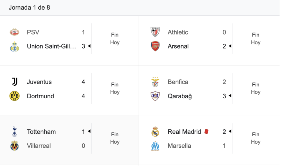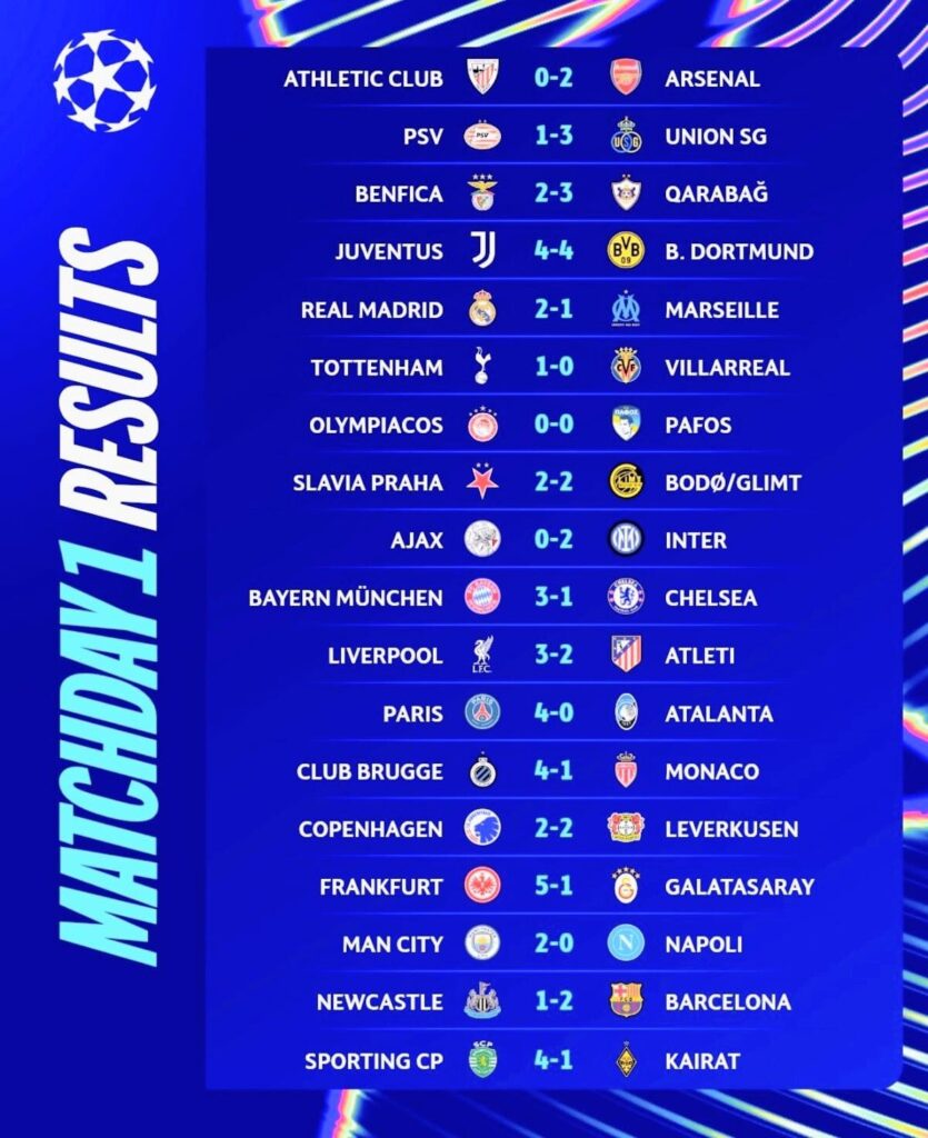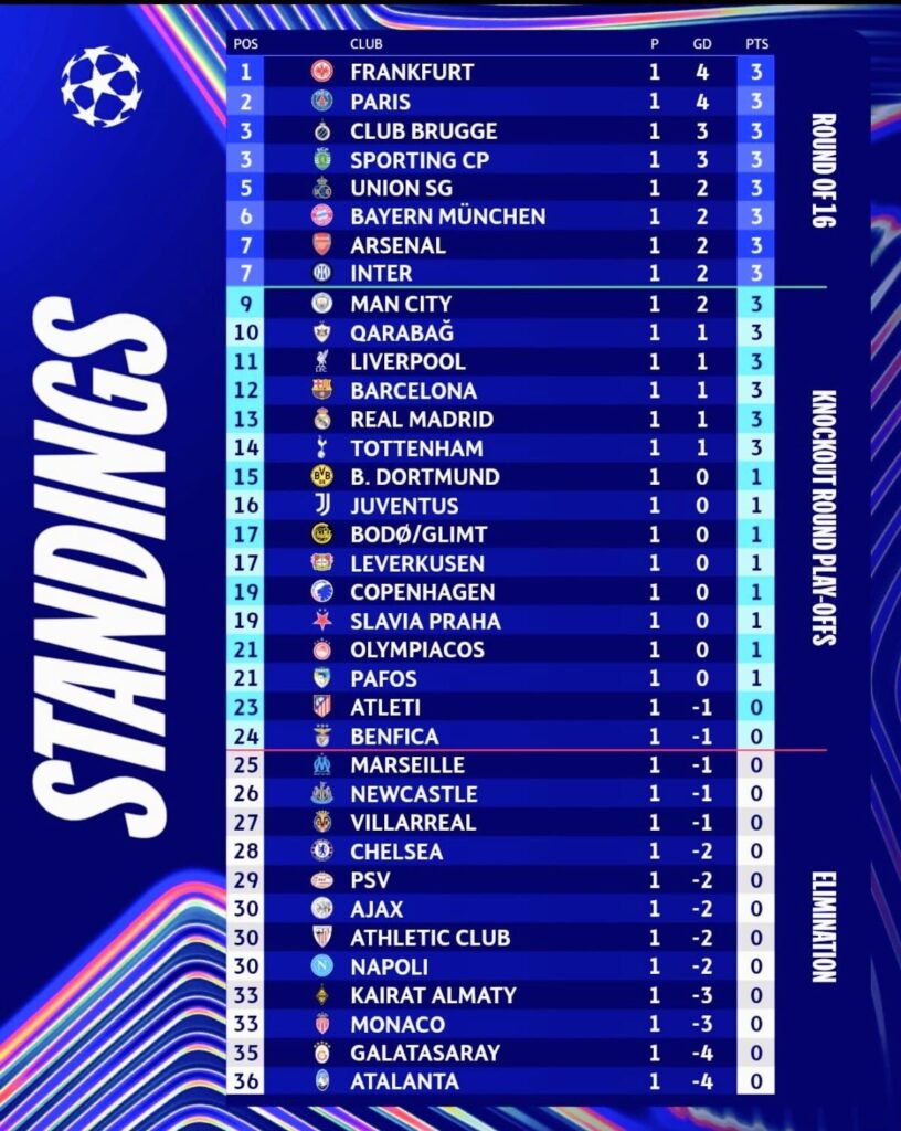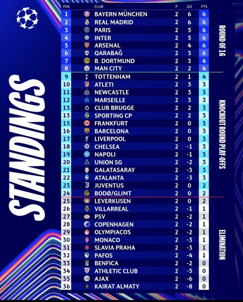 El triunfo llevó a Borussia Dortmund a los siete puntos en la tabla de la fase liga, con dos victorias y un empate, y lo ubica en la cuarta posición, a falta de que se jueguen los partidos del miércoles y jueves.
