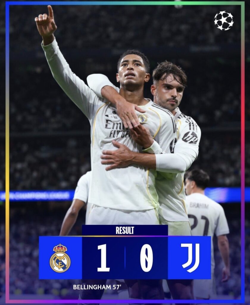 Real Madrid derrotó por 1-0 a Juventus en el Estadio Santiago Bernabéu, por la tercera fecha de la fase liga de la UEFA Champions League 2025-2026.