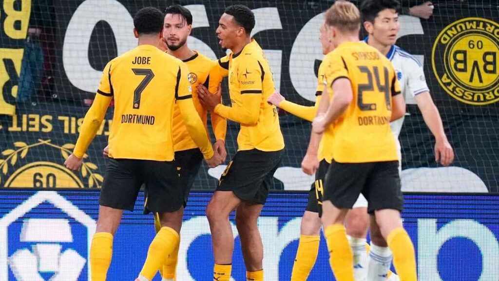 Felix Nmecha abrió el marcador para los de amarillo a los 20 minutos, gracias a un enganche y potentísimo remate de zurda que fue imposible de contener para el arquero Dominik Kotarski. Pasaron 13 minutos y el conjunto danés obtuvo la igualdad por un gol en contra de Waldemar Anton, pero en la segunda mitad Borussia Dortmund se encargó de demostrar el abismo de nivel entre ambos equipos.