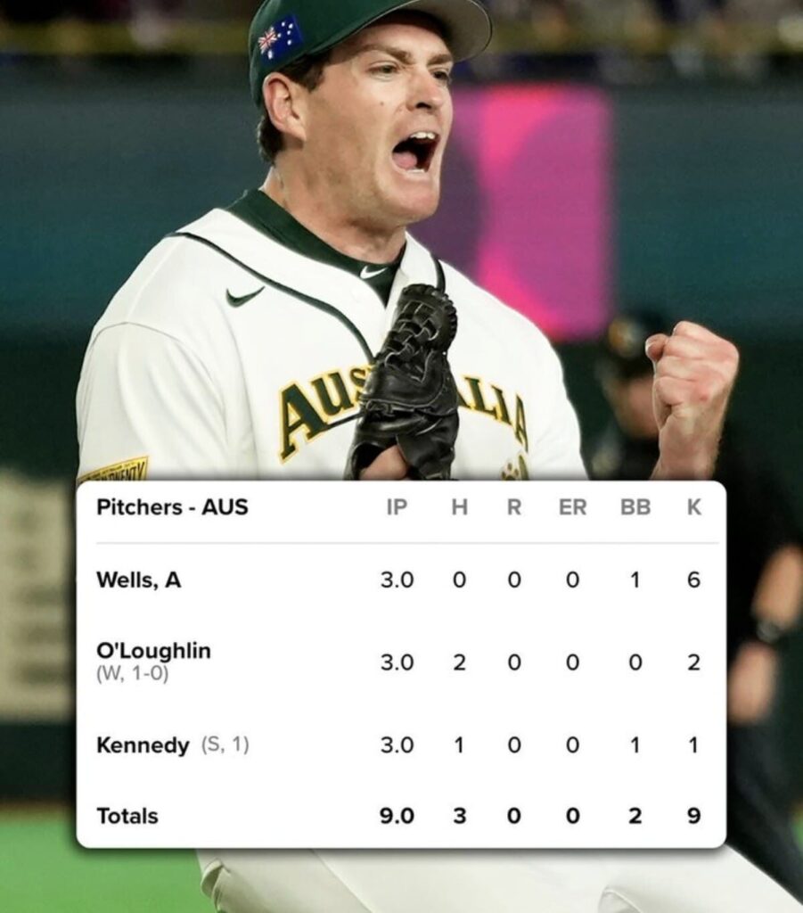 El abridor australiano, Alex Wells, lanzó tres entradas sin permitir hits, mientras que Jack O’Loughlin gestionó las siguientes tres, permitiendo solo dos hits y preparando el terreno para el bullpen.