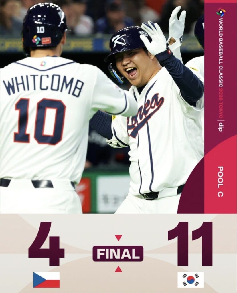 Tokyo – Corea abrió su participación en el Clásico Mundial de Béisbol 2026 con una contundente victoria 11-4 sobre Chequia en el Tokyo Dome, apoyándose en un grand slam de Bo Gyeong Moon en la primera entrada que puso el marcador 4-0 y marcó el ritmo de un partido que los asiáticos dominaron de principio a fin, conectando cuatro jonrones en total incluyendo dos de Shay Whitcomb que terminaron por sepultar a un pitcheo checo que nunca pudo recuperarse del golpe inicial y permitió 10 hits en una tarde para el olvido frente a una de las potencias del Pool C.