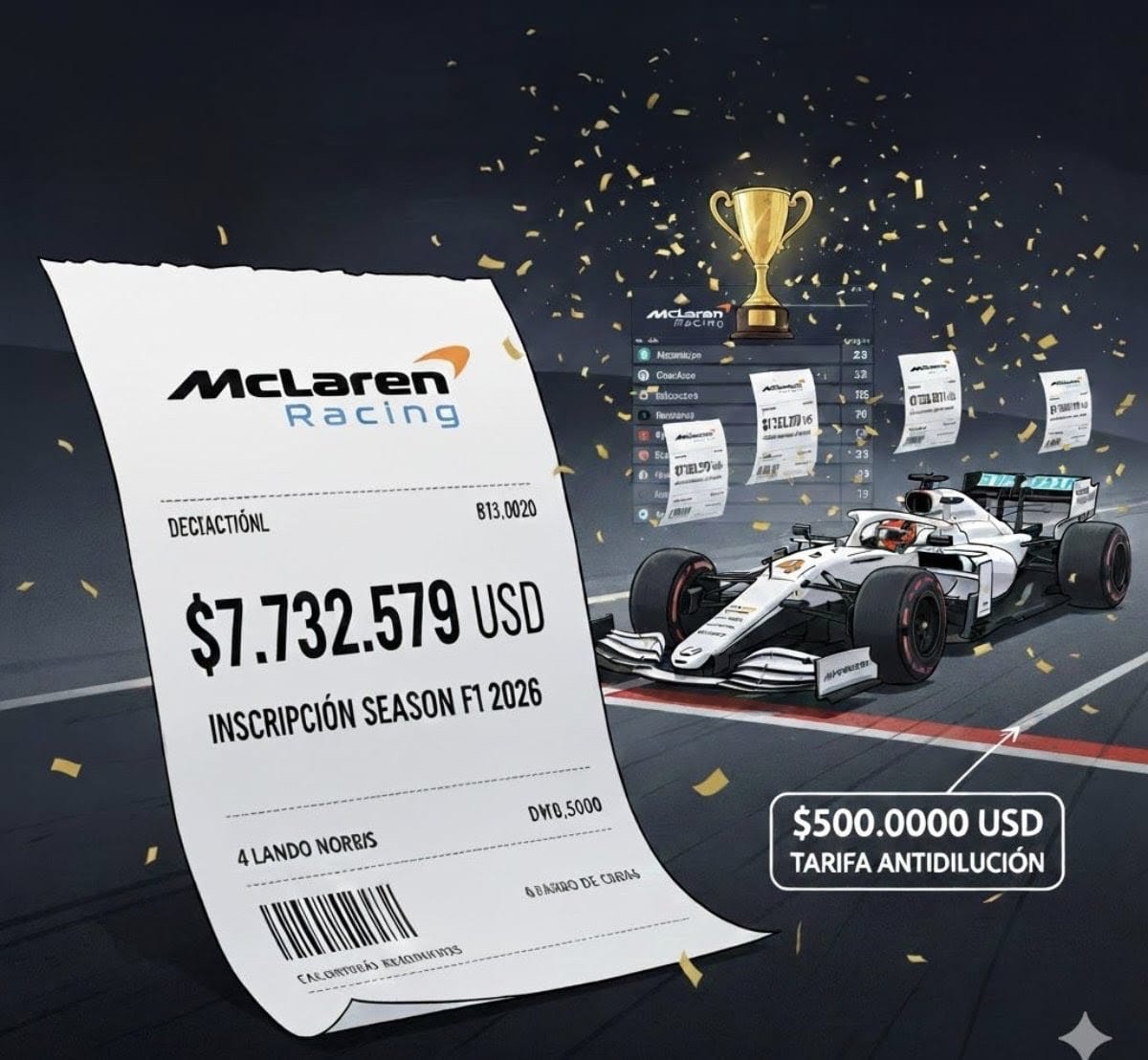 El éxito en la Fórmula 1 tiene un costo millonario, y McLaren lo comprobará en 2026. Tras conquistar los títulos de Constructores y Pilotos (gracias a la victoria de Lando Norris), la escudería británica deberá afrontar una cuota de inscripción para el próximo ejercicio que se estima en más de $7,7 millones de dólares.