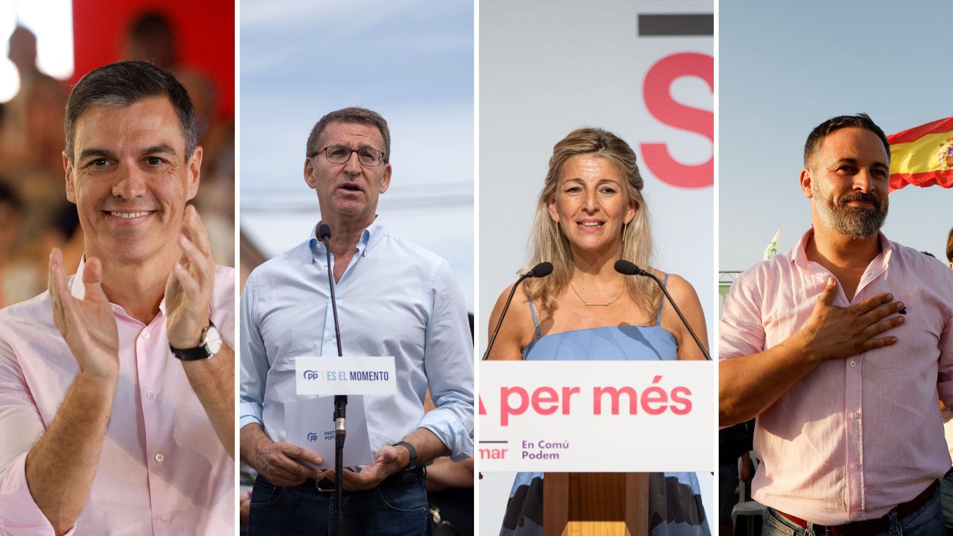Yolanda Díaz (Sumar), Pedro Sánchez (PSOE), Alberto Núñez Feijóo (PP) y Santiago Abascal (Vox).