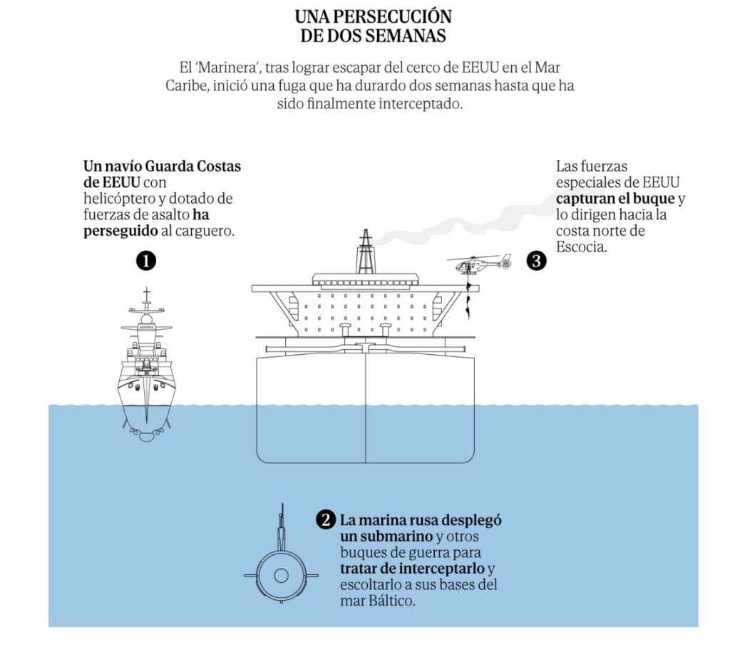 Con estos dos golpes, ya son cuatro los petroleros incautados desde diciembre (Skipper, Centuries, Bella1 y M Sophia). Según informes de The New York Times, otros tres buques sospechosos están intentando maniobras similares de cambio de bandera para refugiarse bajo el pabellón ruso.