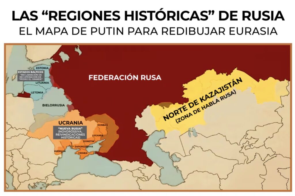Para Putin, el mapa de la Federación Rusa actual es una anomalía; un error geográfico heredado del colapso de la Unión Soviética en 1991. En su lugar, el Kremlin impulsa el concepto de “Rusia Histórica” (Istoricheskaya Rossiya), un territorio fluido que coincide con las fronteras del Imperio de los zares y que Moscú reclama el derecho de “reunificar”.