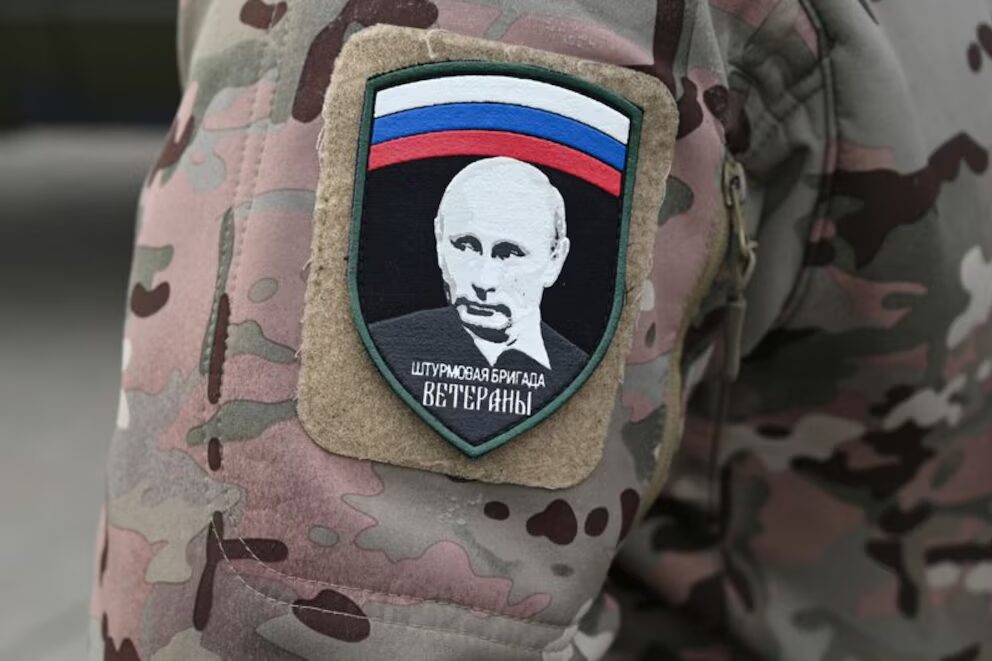Un militar ruso luce un parche con la imagen de Vladimir Putin durante una ceremonia de entrega de equipo militar. Este acto se enmarca en la doctrina rusa que transforma la guerra de agresión en una “guerra defensiva” por lo que Moscú define como sus “regiones históricas” (REUTERS/Stringer)