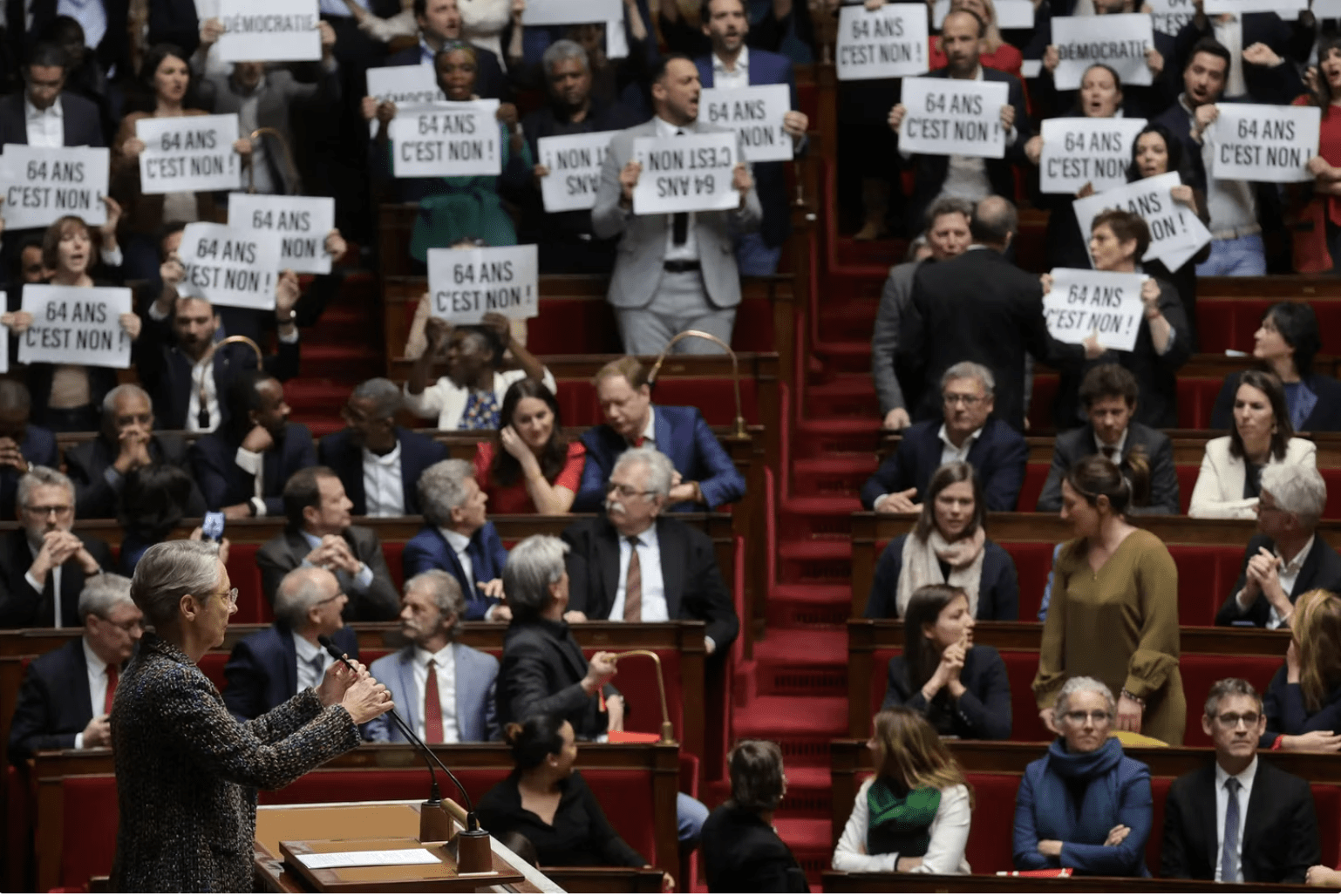 Macron ordenó el jueves a la primera ministra Elisabeth Borne que ejerciese un poder constitucional especial para aprobar la impopular reforma de las pensiones sin votaciones en la Asamblea Nacional, la cámara baja del Parlamento francés.
