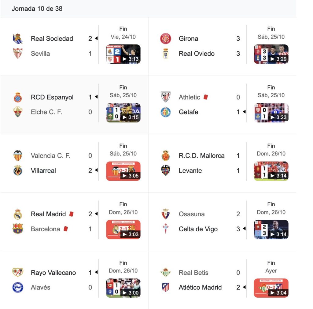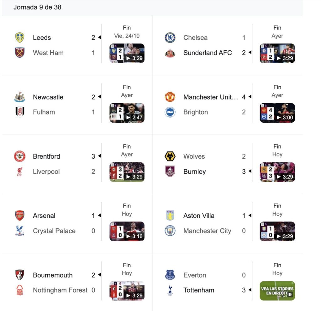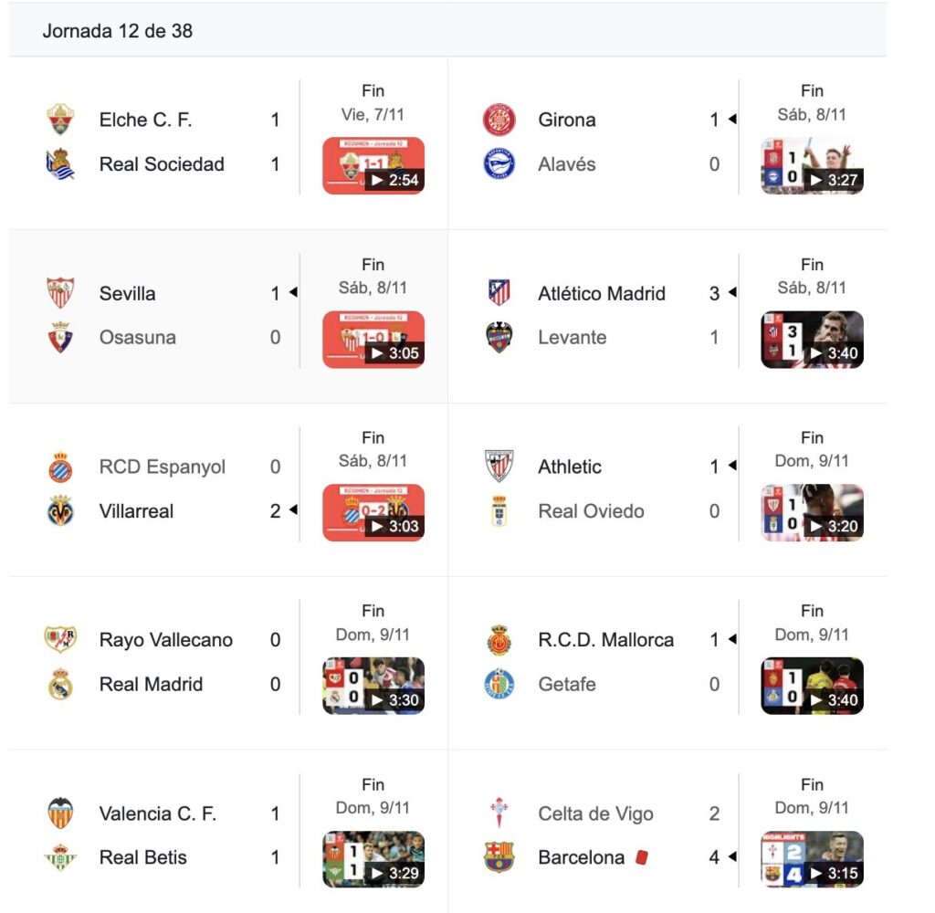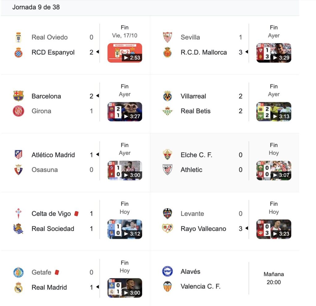 Resultados de la jornada