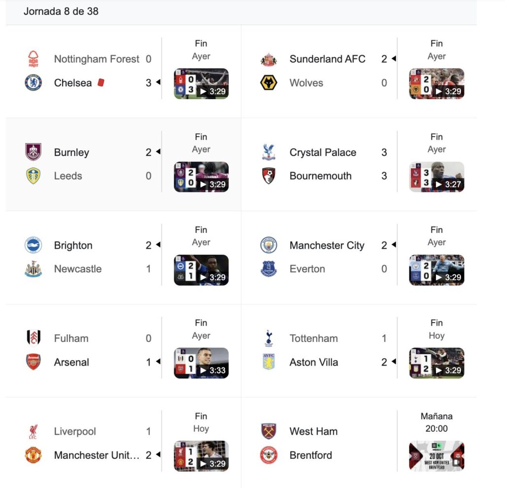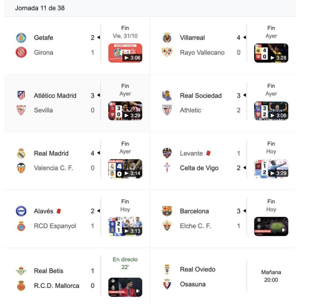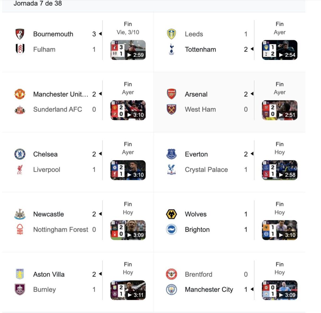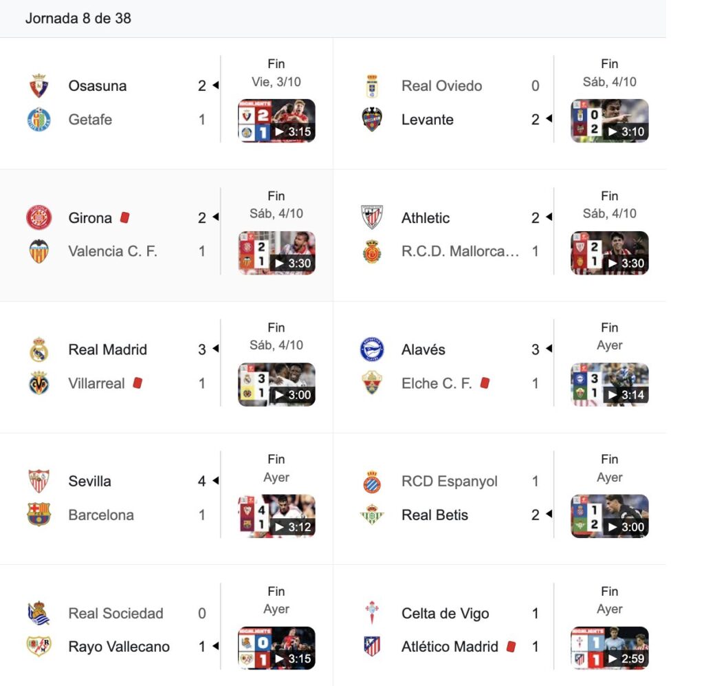 Resultados de la jornada