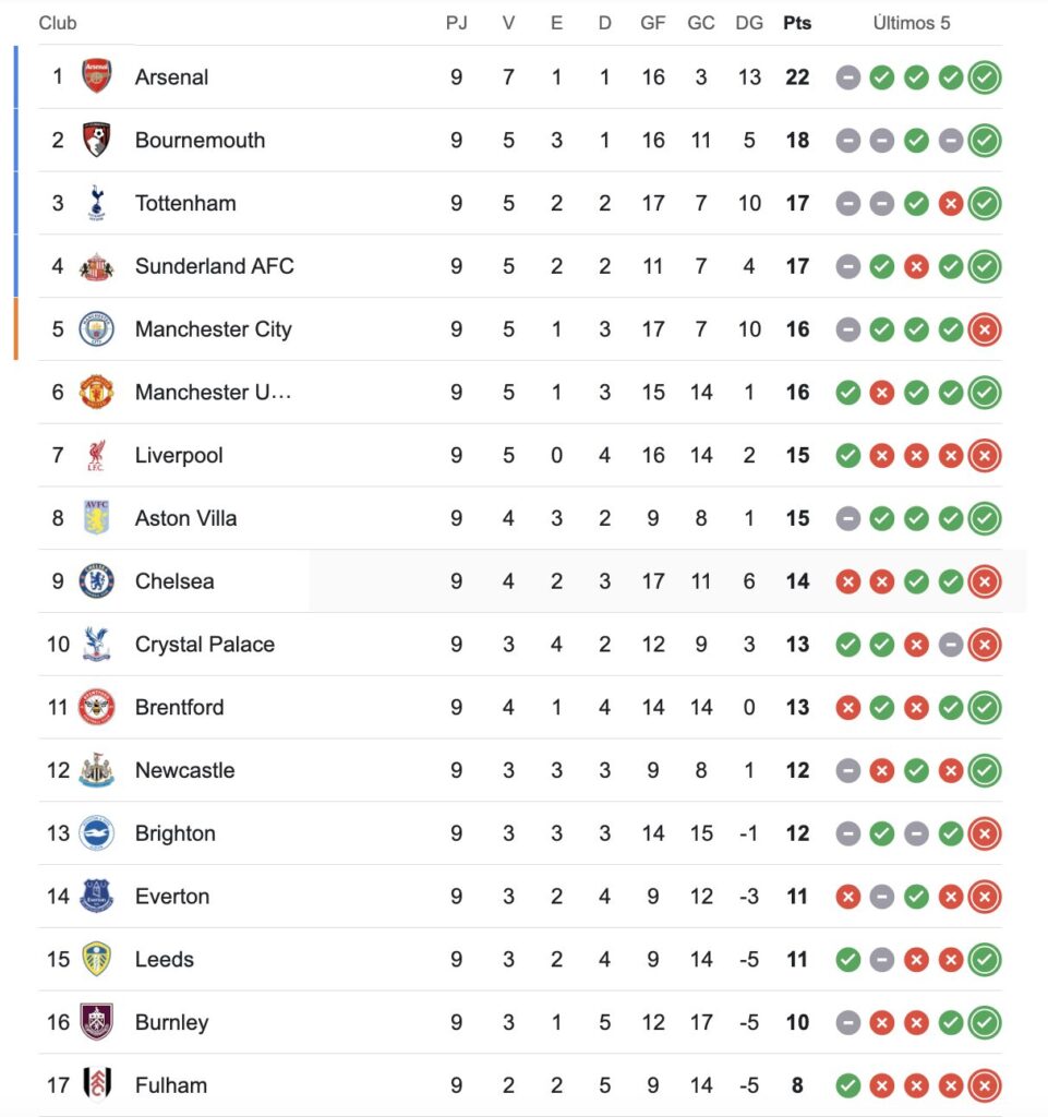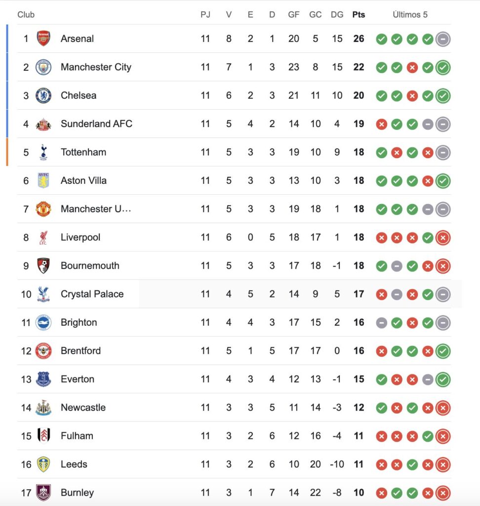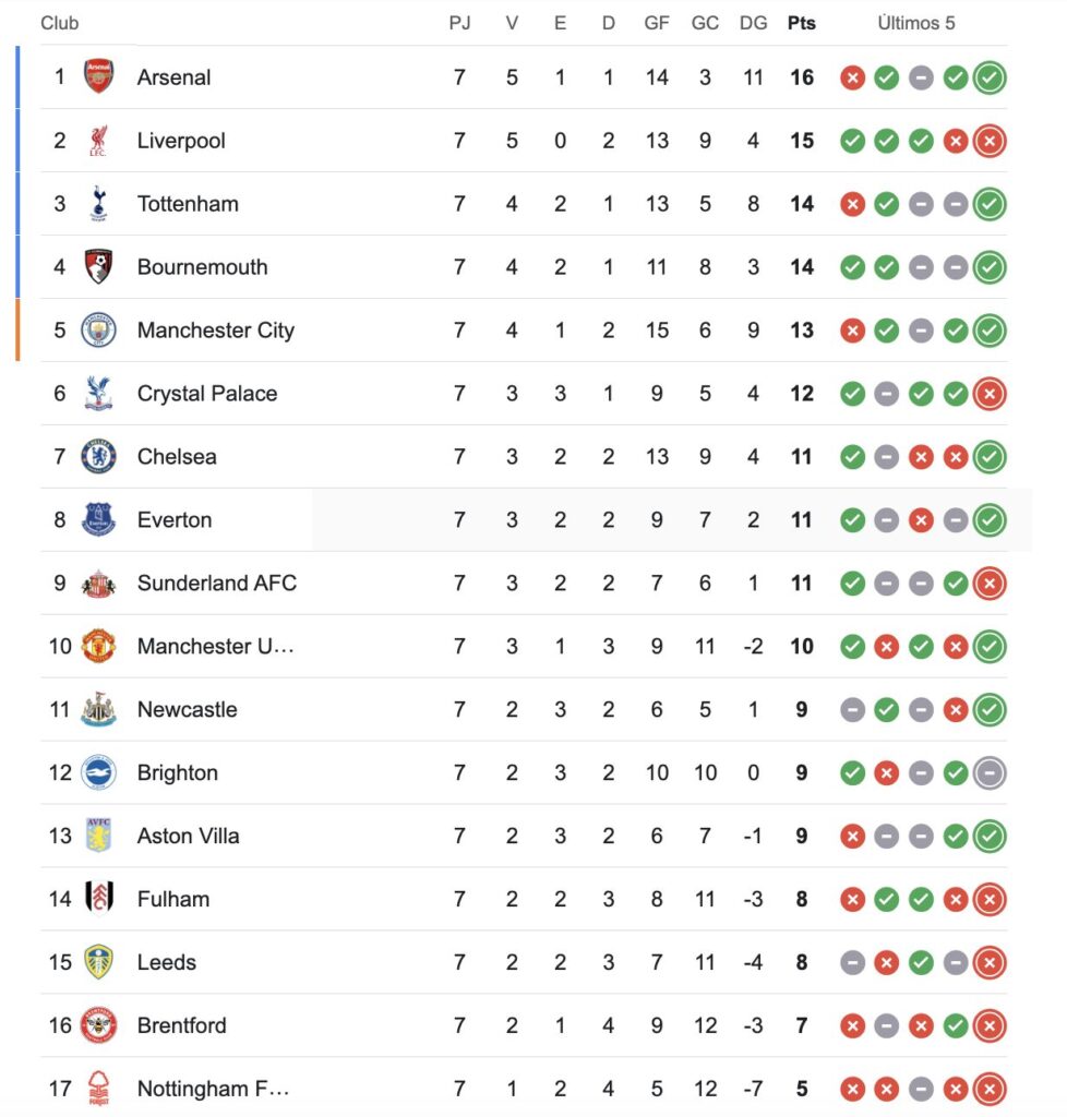Arsenal no recibe goles hace 7 partidos (entre Premier, Champions y Copa de la Liga). El último tanto recibido fue el 28 de septiembre en la victoria por 2 a 1 ante Newcastle. Y no pierde desde el 31 de agosto, cuando cayó 1 a 0 ante Liverpool, ya lleva 11 victorias y un empate.
