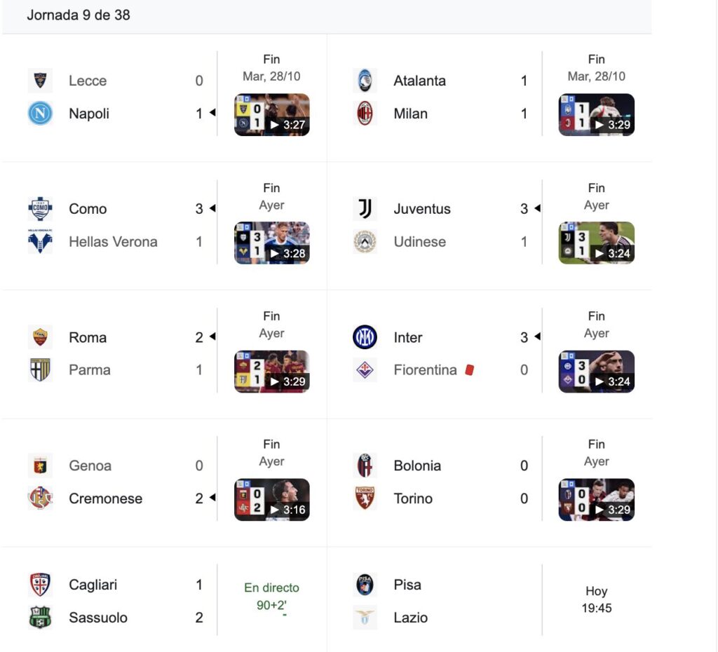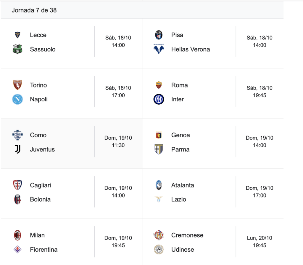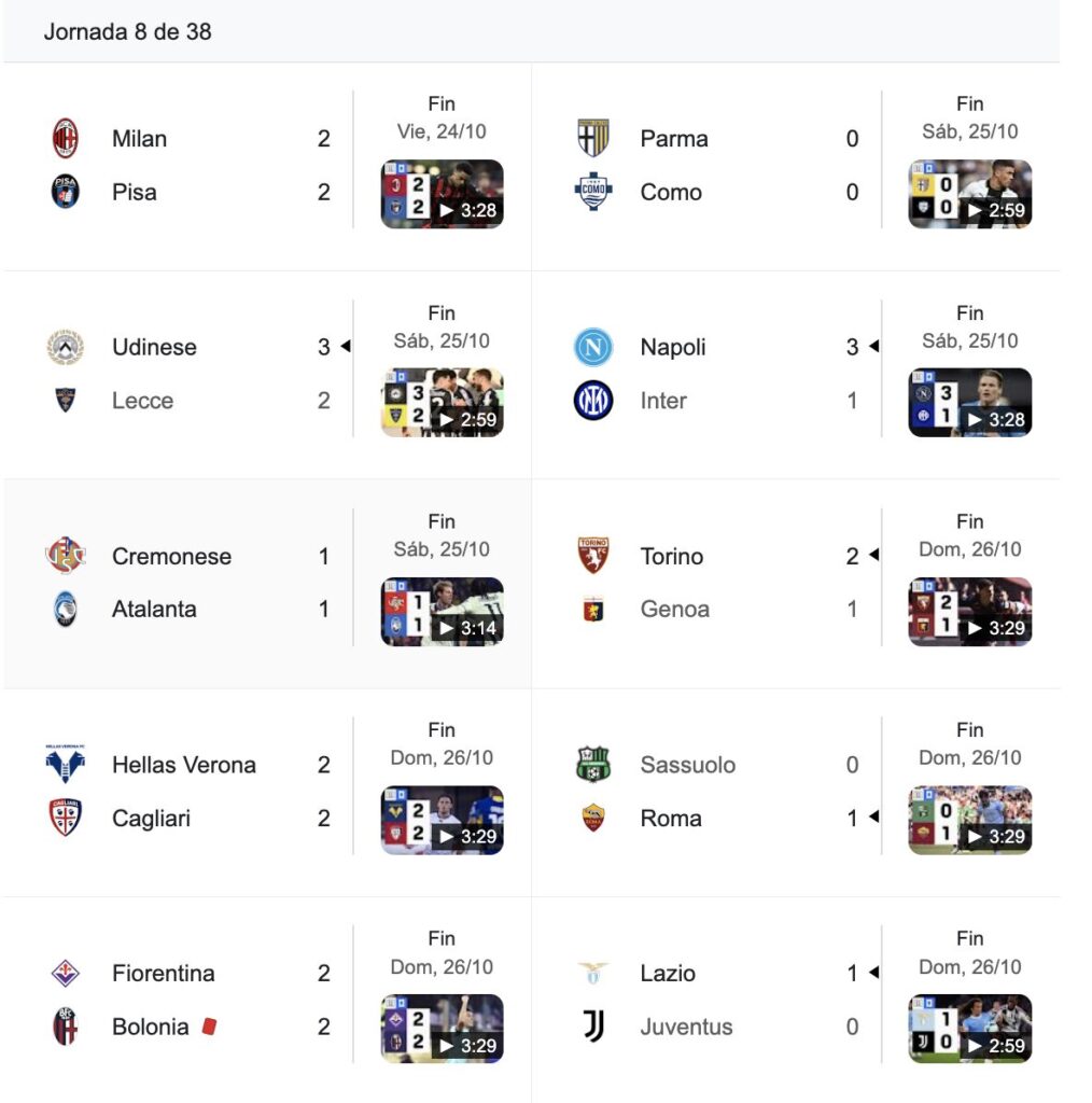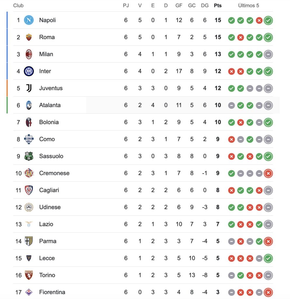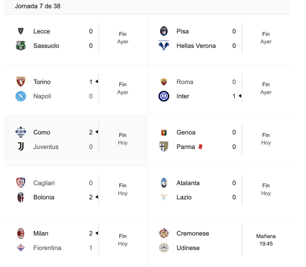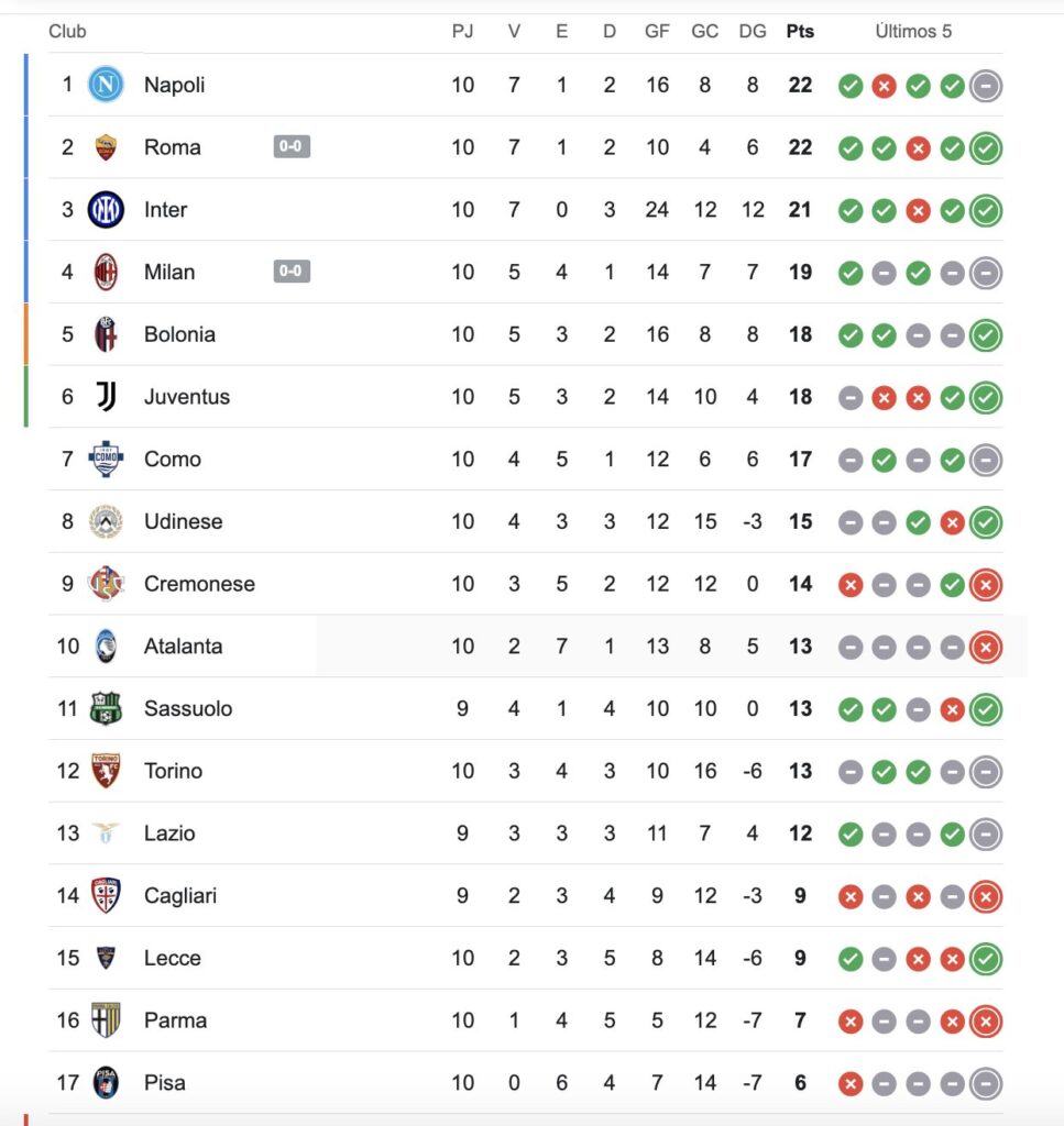 En la próxima fecha, Napoli visitará a Bologna y Como recibirá a Cagliari.