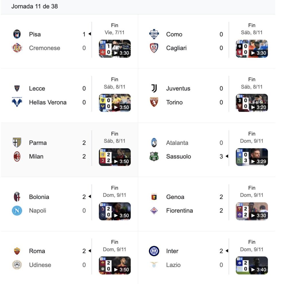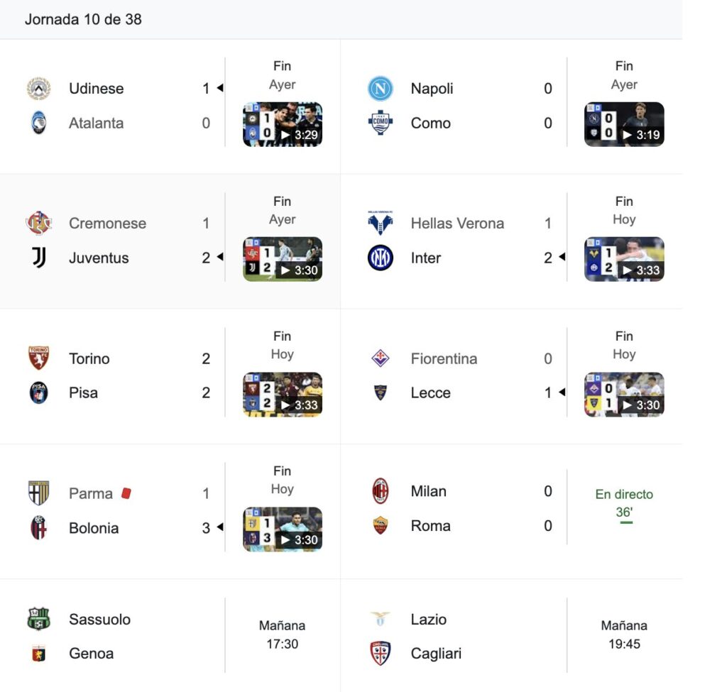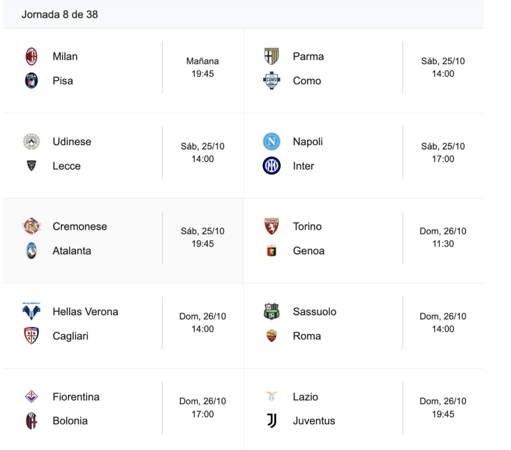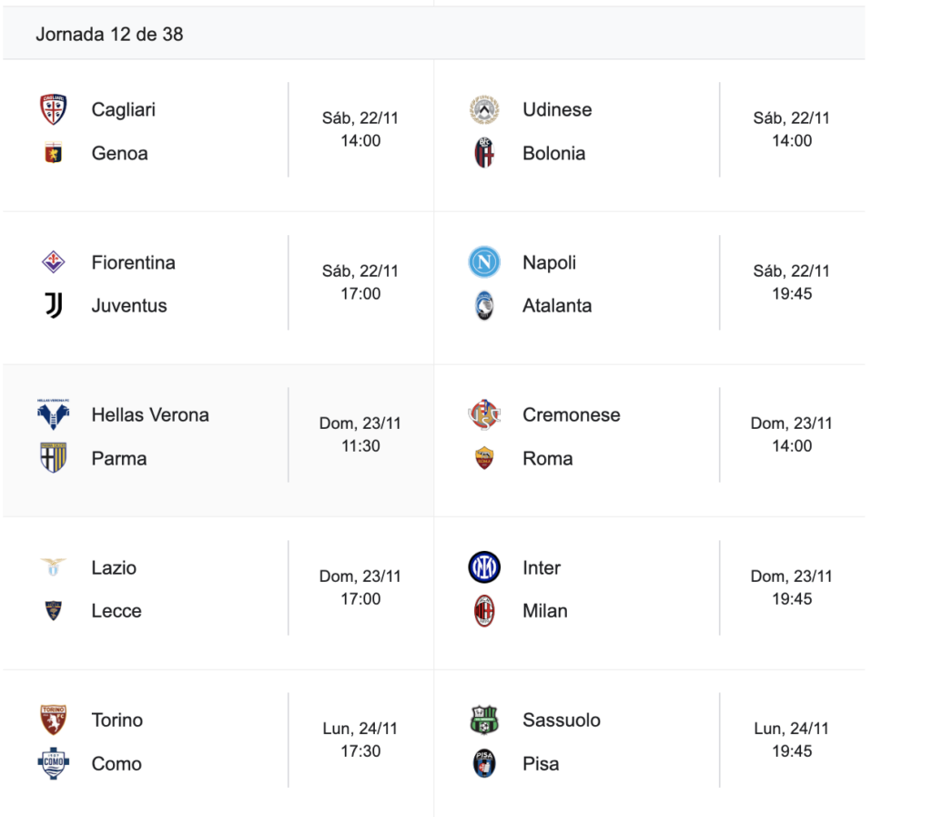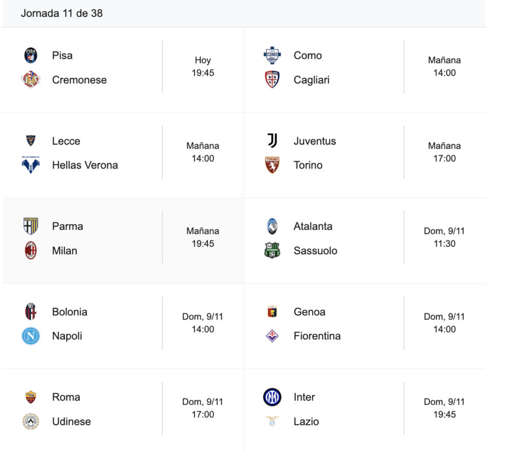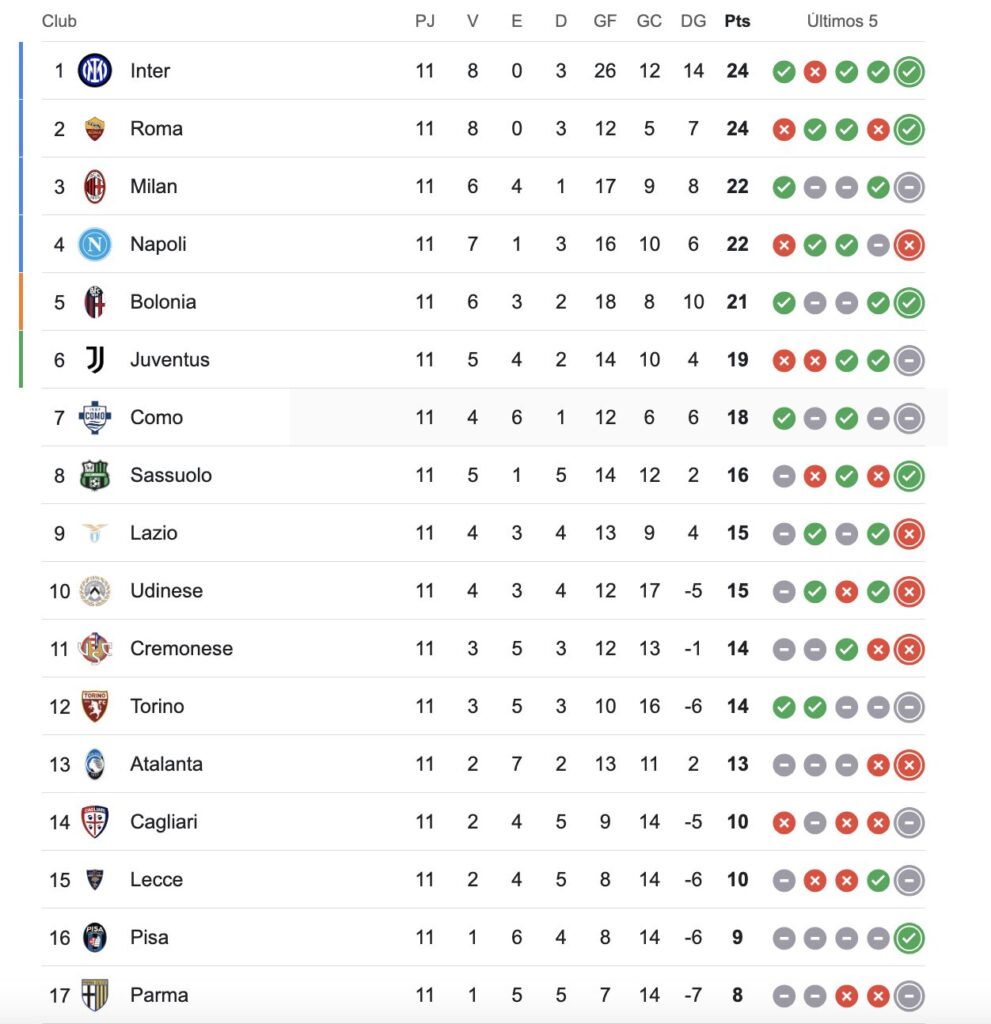 En la próxima fecha, Napoli visitará a Bologna y Como recibirá a Cagliari.