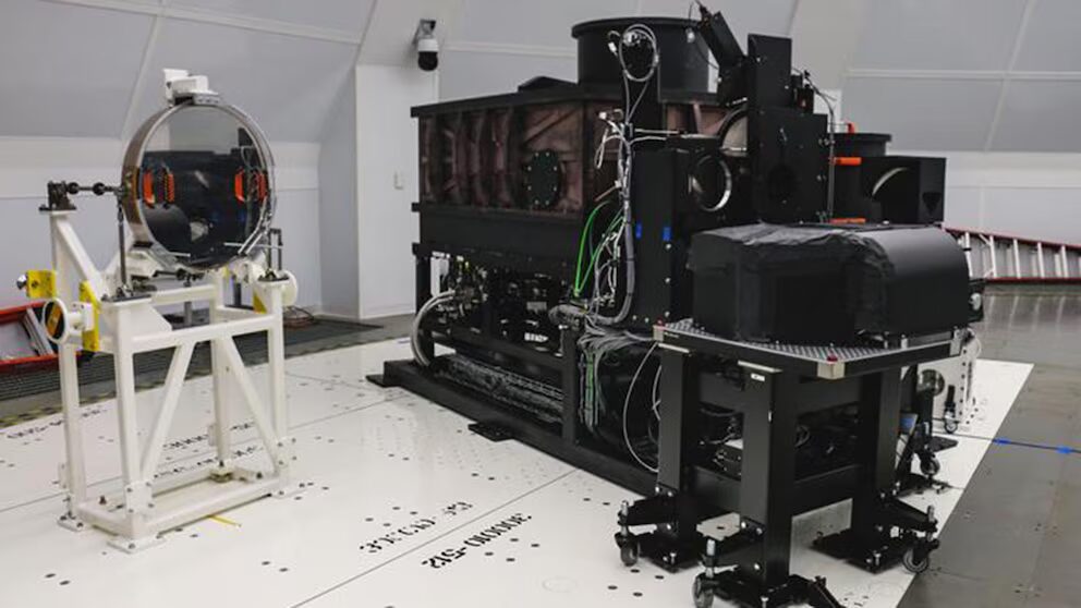 Cryo-NIRSP (a la derecha) es el espectropolarímetro coronal avanzado del telescopio. Fue utilizado para rastrear los movimientos de torsión del plasma en la corona solar (NSF/NSO/AURA)