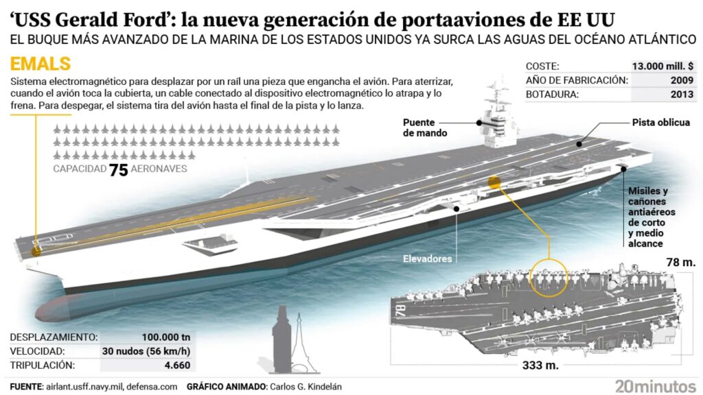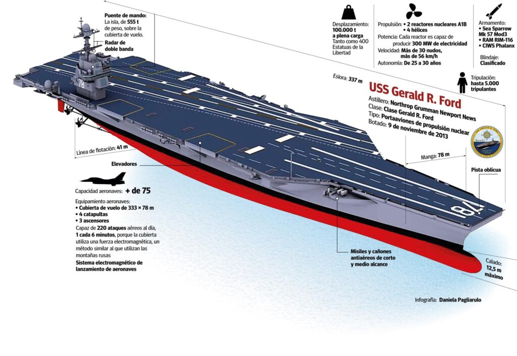 | Tripulación | Aprox. 4.660 personas (Reducción de cientos respecto a la Clase Nimitz gracias a la automatización). | Mayor eficiencia operativa y mejor calidad de vida para la tripulación. |
