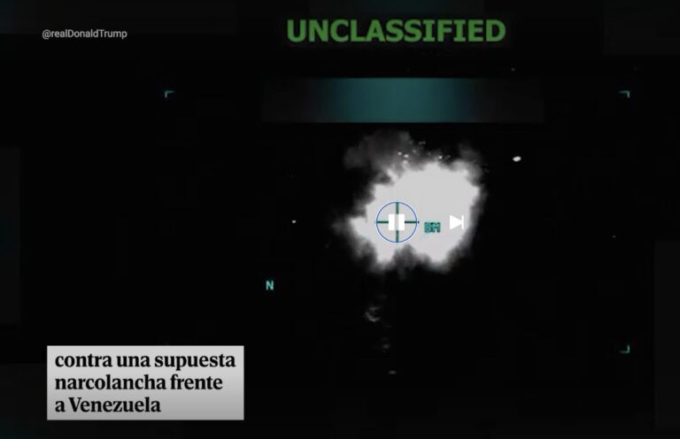 “(Organismos de) inteligencia confirmaron que la embarcación estaba traficando narcóticos, estaba asociada con redes ilícitas de narcoterrorismo y transitaba por una ruta conocida de una organización terrorista designada”, añadió el mandatario estadounidense. Previamente, Trump había citado otros dos ataques de los que no ha presentado pruebas o estadísticas concluyentes. El video publicado muestra la destrucción total de la lancha.
