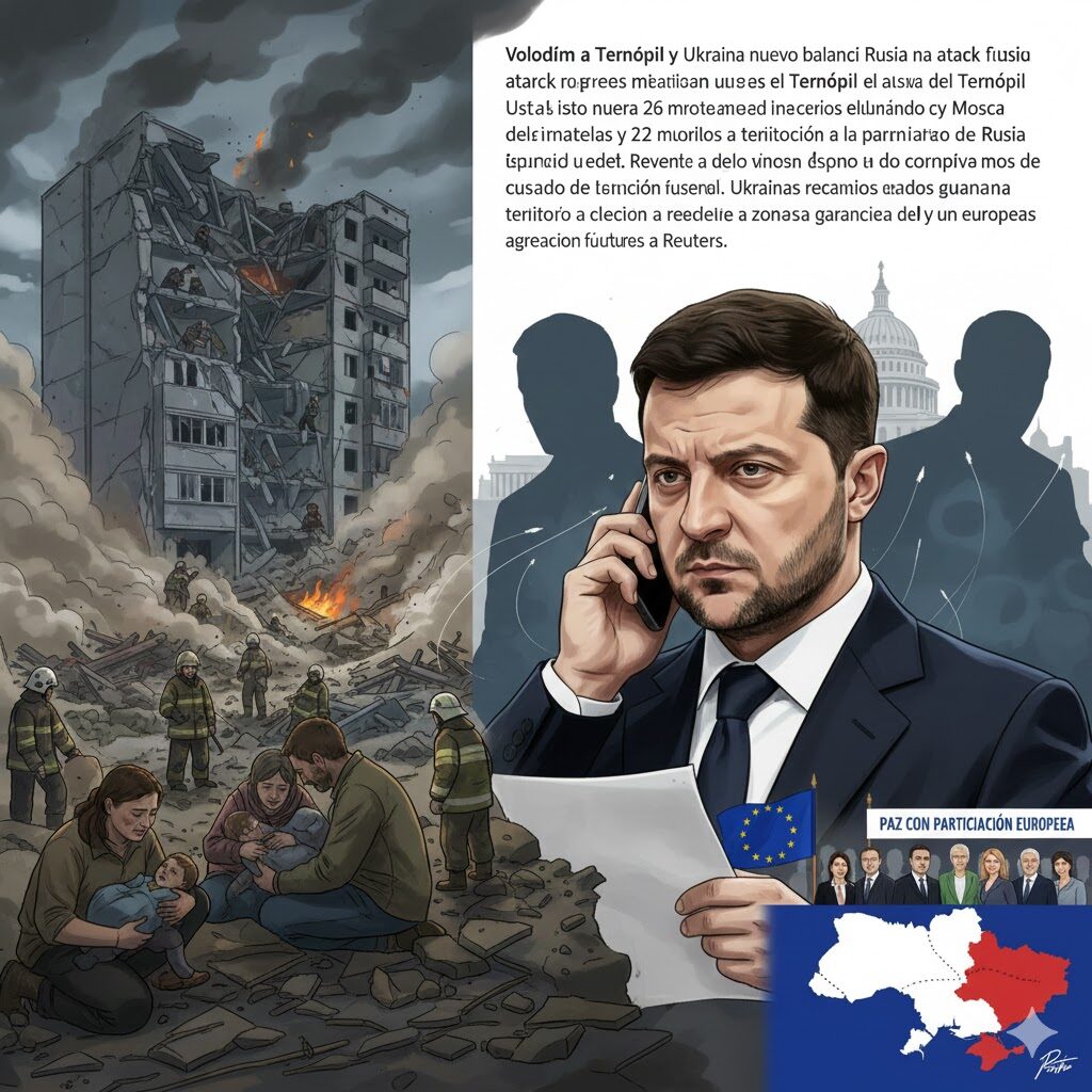 Volodímir Zelenski ha ofrecido un desgarrador balance tras el ataque ruso que el jueves pulverizó un bloque de viviendas en la ciudad de Ternópil, dejando 26 muertos, entre ellos tres niños, y 22 personas desaparecidas. Este suceso marca una de las peores matanzas desde el inicio de la guerra en Ucrania.
